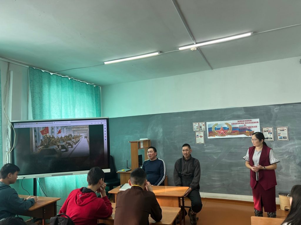 В рамках месячника оборонно-массовой и военно-патриотической работы, посвященного празднованию Дня защитника Отечества в МБОУ Кызыл-Сылдысской СОШ была организована встреча с участниками СВО на территории Украины, выпускниками нашей школы Дончай Белек Сергеевичем, Дармажап Сергек Ивановичем среди учащихся 5-11 классов.