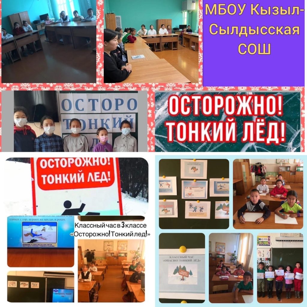 В МБОУ Кызыл-Сылдысская СОШ прошли классные часы на тему: «Осторожно, тонкий лёд!». Для обучающихся начальной школы прошел единый классный час с просмотром видеороликов по теме «Тонкий лед». Учителем ОБЖ — Идам А-С.М был проведен профилактическая беседа, где ребята разбирали опасности тонкого льда, как себя вести если под тобой треснул лед и многое другое.