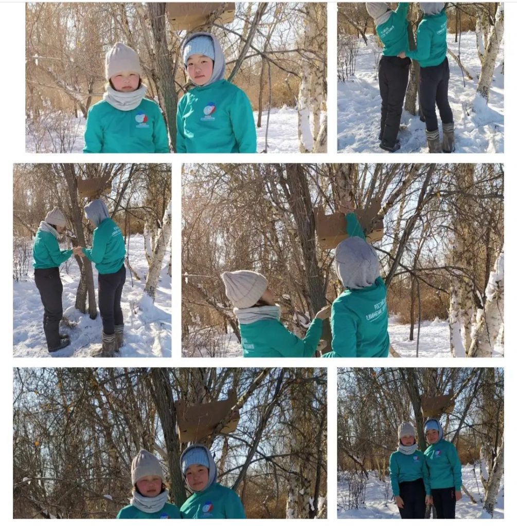 Волонтеры школы решили помочь птицам пережить зиму, сделав им кормушки «Покормите птиц зимой». Учащиеся 6 класса Буду Аяна, Дугер Доржана