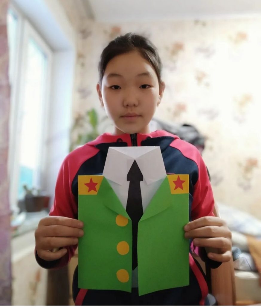 Конкурс открыток «Моему герою — ПАПЕ!» ученица 5 класса МБОУ Кызыл-Сылдысской СОШ Казырыкпай Шуру. Классный руководитель Серембил М.Х.