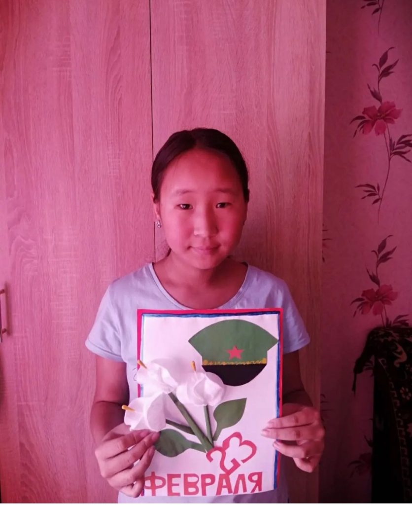 Конкурс открыток «Моему герою — ПАПЕ!» ученица 5 класса МБОУ Кызыл-Сылдысской СОШ Минчээ Анюта. Классный руководитель Серембил М.Х.