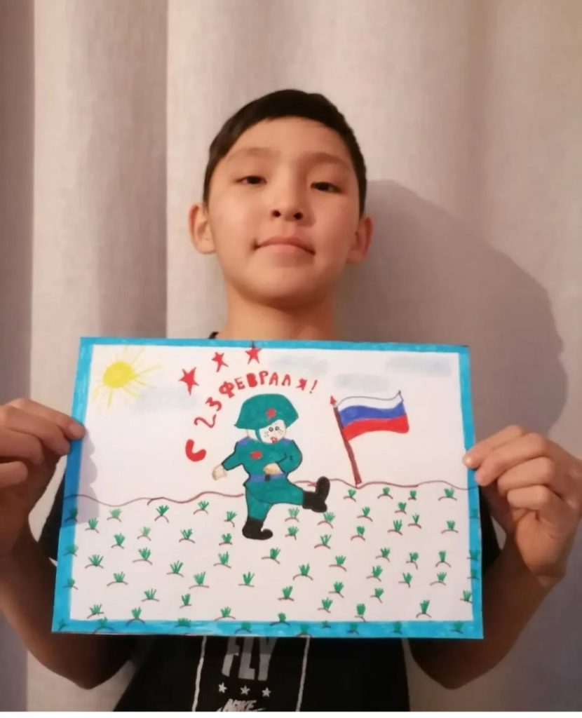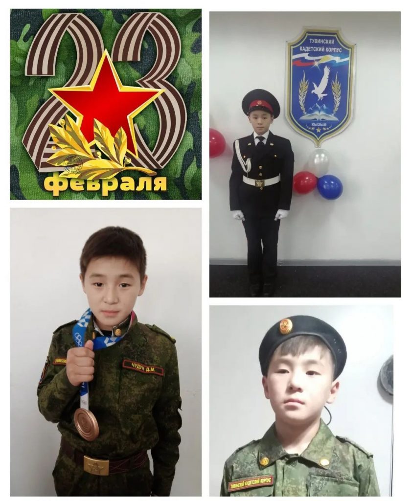 Наш ученик Чудун Дозураш, курсант Тувинского кадетского корпуса, поздравляет педагогов мужчин и ребят с 23 февраля!