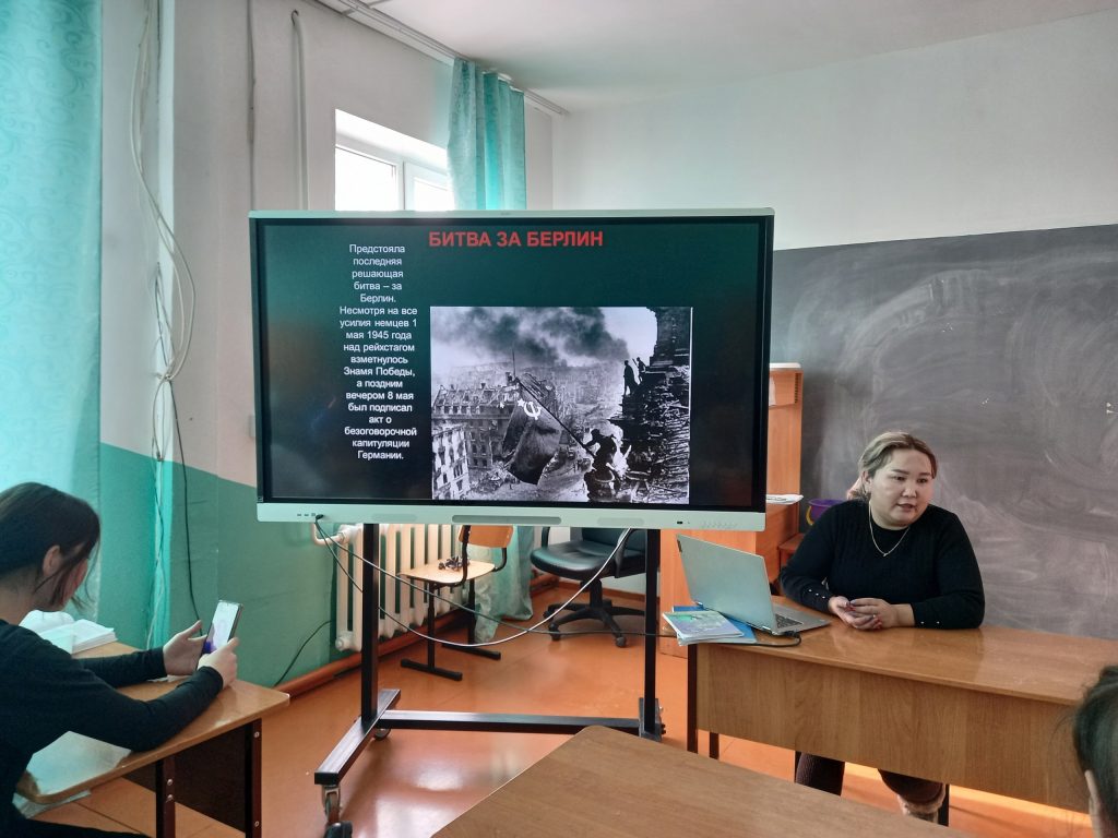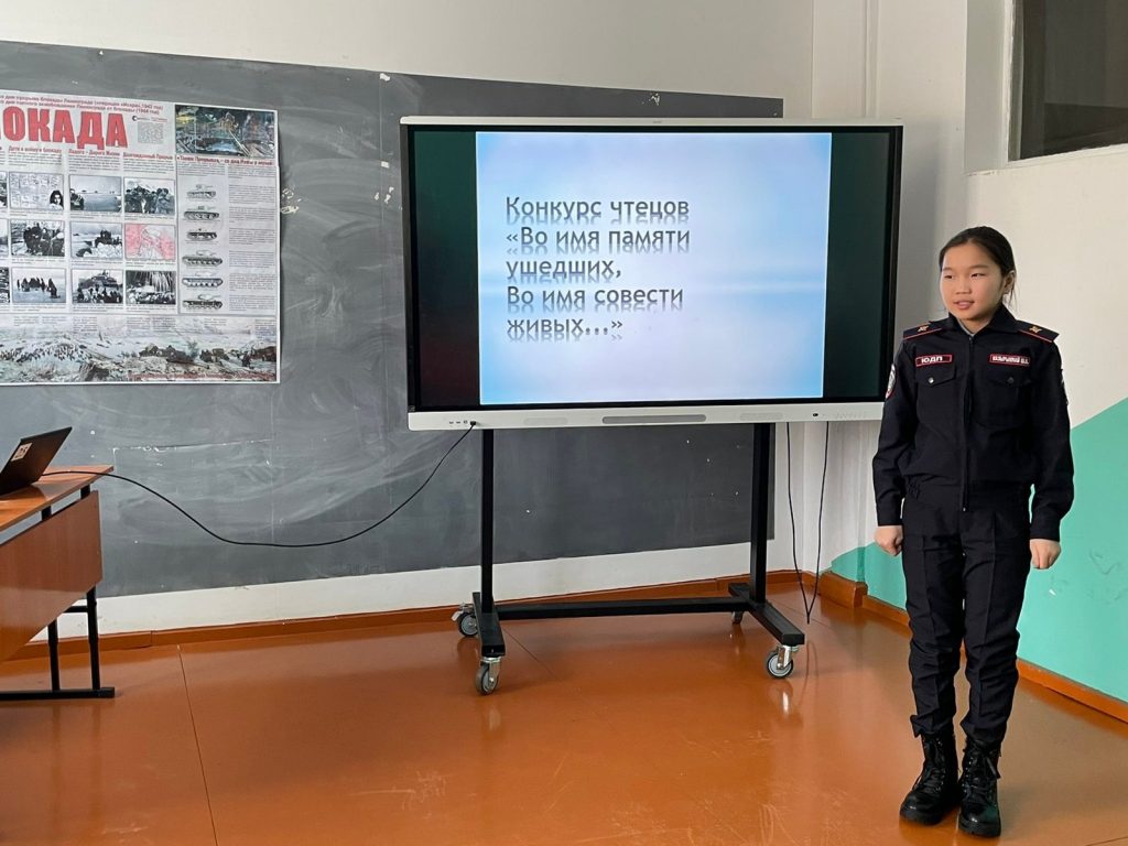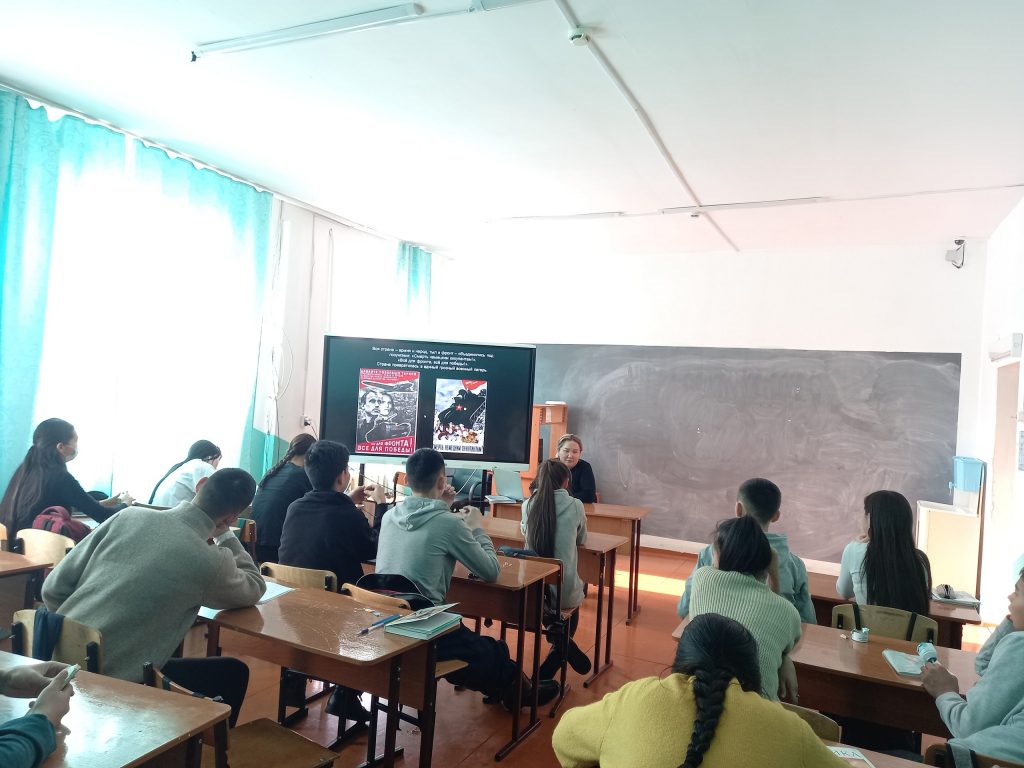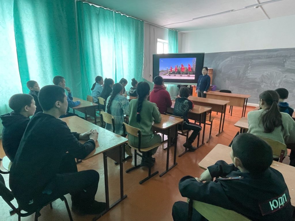 19 января заместитель директора по патриотическому воспитанию провела урок мужества «Поклонимся за тот великий бой» у 9 класса МБОУ Кызыл-Сылдысская СОШ.