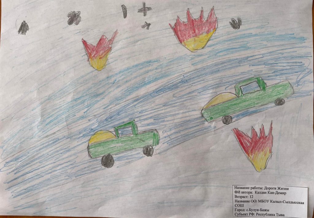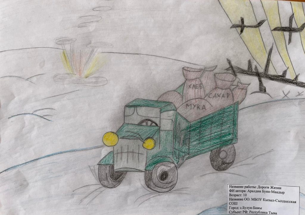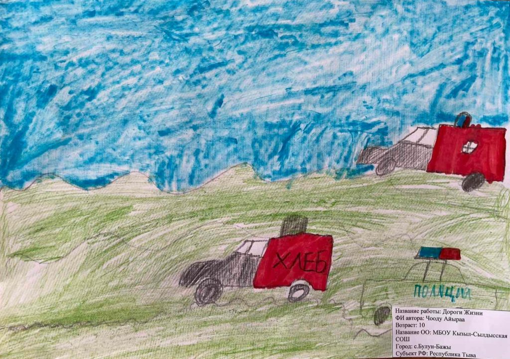 Учащиеся МБОУ Кызыл-Сылдысская СОШ активно участвуют в Всероссийском конкурсе детского рисунка, посвящённого 80-летию создания «Дороги жизни».