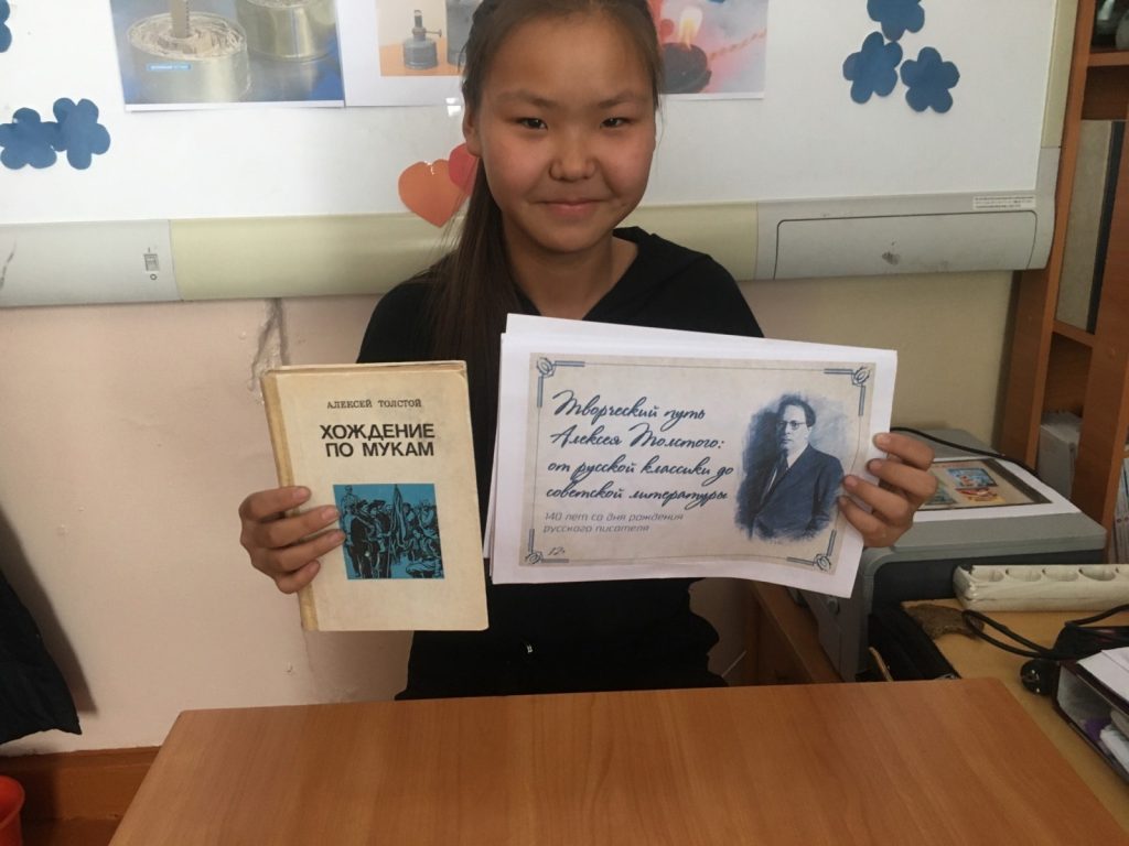 20января в библиотеке МБОУ Кызыл-Сылдысской СОШ проведен литературный час по книге А.Толстого, 140-летию рождения писателя.