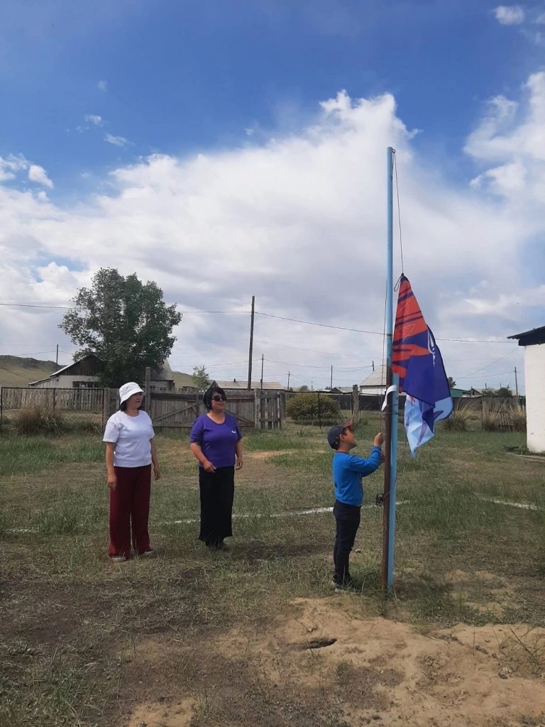 Этот солнечный день начался с торжественной церемонии поднятия государственных флагов Российской Федерации и Республики Тыва, в честь празднования Дня России.