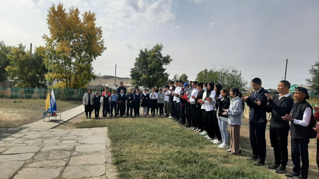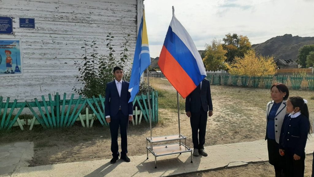 Поднятие государственного флага в МБОУ КЫЗЫЛ-СЫЛДЫССКАЯ СОШ под гимн Российской Федерации и Республики Тыва.